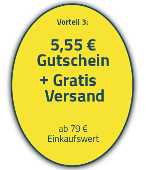 *Aktionsbedingungen: Um den gratis Versand und den 5,55 € Gutschein zu aktivieren müssen Sie den Gutscheincode OSTERN26 im Warenkorb eingegeben. Der Mindesteinkaufswert beträgt beim gratis Versand 49 €. Der Mindesteinkaufswert beim 5,55 € Gutschein + Gratis Versand beträgt 79 €. Die Vorteile können pro Kunde und Haushalt nur einmal genutzt werden. Beide Vorteile gelten nur bis inkl. 08.04.2026. Werden die Aktionsbedingungen durch Rücksendung im Rahmen eines Widerrufs nicht mehr erfüllt, so wird der reguläre Preis für die Ware in Rechnung gestellt. Die Vorteilsaktion ist nicht mit Zugaben/Gutscheinen aus anderen Werbemitteln kombinierbar und eine Barauszahlung ist nicht möglich. Die Aktion gilt nur über den Online-Shop. Schreibfehler und Irrtümer sind vorbehalten.