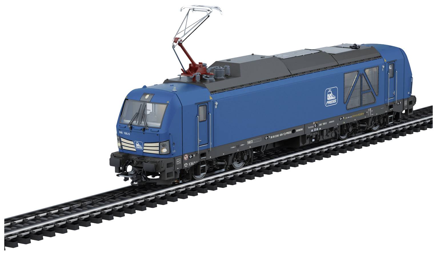Mit Strom und Diesel Vorbild: Zweikraftlokomotive BR 248 (Vectron Dual Mode) der Eisenbahn-Bau- und Betriebsgesellschaft Pressnitztalbahn mbH (PRESS). Aus der Vectron-Produktfamilie von Siemens. Betriebsnummer 248 105. Betriebszustand 2023.