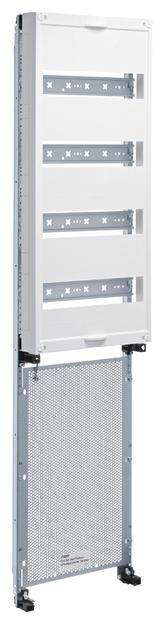 Mediafeld, univers, FW, für Feldv. UP 7-reihig, 4x12Mod+3xMedia, 1050x250mm,QC. Einbaufeld oben für Installationskleinverteiler Unterputz nach DIN EN 61439-1/-3 (VDE 0660-600-1/-3), nach Maßnorm DIN 43 871, zum Einbau von Geräten bis 125 A, Tragschienen aus profiliertem und verzinktem Stahlblech, Gerätetragschienen aus profiliertem und verzinktem Stahlblech, mit Berührungsschutzabdeckung und Quickconnect Klemmen in Kombination mit Multimediafeld unten bestückt mit Lochblechplatte, waagerechter Abschottung nach oben.
