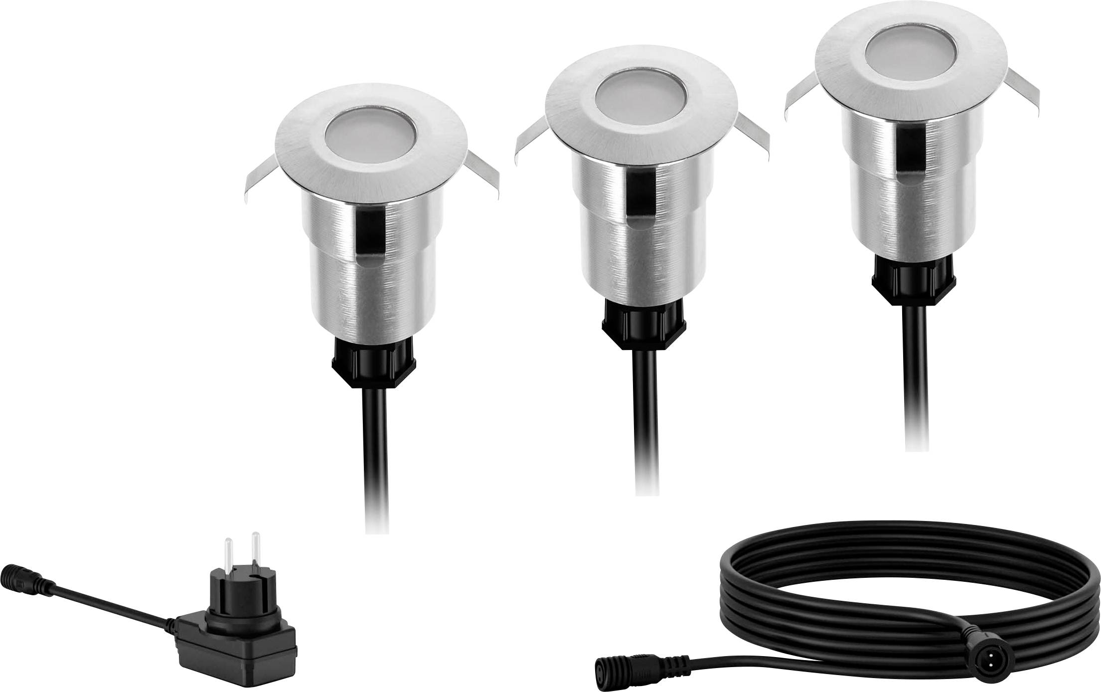 Niedervolt Leuchte im 3er Set inkl. Netzteil und 5m Verlängerungskabel.