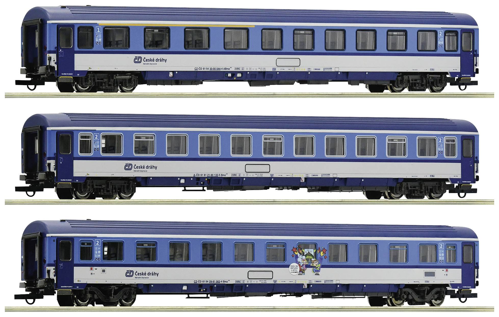 Das Set besteht aus einem Eurofima-Schnellzugwagen 1./2. Klasse, Gattung ABmz 346, einem Eurofima-Schnellzugwagen 2. Klasse, Gattung Bmz 226 und einem Eurofima-Schnellzugwagen 2. Klasse, Gattung Bmz 229, mit Kinderkino.