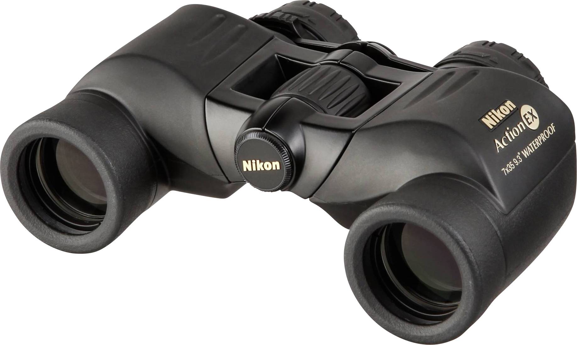 Nikon Action EX 7x35 CF -Wasserdicht (bis 1 Meter für 5 Minuten) und beschlagfrei durch Stickstofffüllung -Großer Austrittspupillenabstand für ein klares Sehfeld selbst für Brillenträger -Dreh- und schiebbare Augenmuscheln mit Multi-Click zur Erleichterung der Augenausrichtung nach dem richtigen Austrittspupillenabstand -Großes Sehfeld -Mehrschichtvergütete Linsen und ein großer Objektivdurchmesser für optimale Bildschärfe -Stoßfest durch Gummiarmierung und ein komfortabler, sicherer Griff -Blei- und arsenfreies Eco-Glas