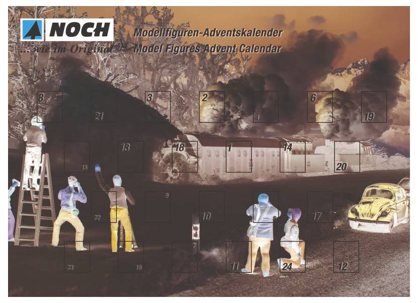Der Figuren-Adventskalender von NOCH hat eine lange Tradition. Seit vielen Jahren freuen sich Modelleisenbahner und Dioramenbauer jeden Tag vor Weihnachten auf eine kleine Modellfigur. Die Figuren in den Kalendern für die Spurweiten H0, TT und N sind handbemalt. Die Figuren im Spur Z Kalender sind 3D-Master Figuren, werden also vollfarbig 3D gedruckt. Ein Figuren-Adventskalender ist das ideale Geschenk für jeden Modellbahner.