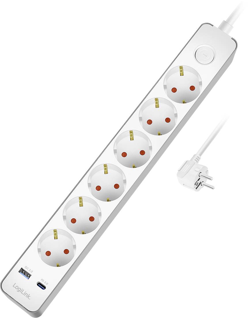 LogiLink LPS288U Steckdosenleiste mit Schalter Weiß Schutzkontakt 1St.
