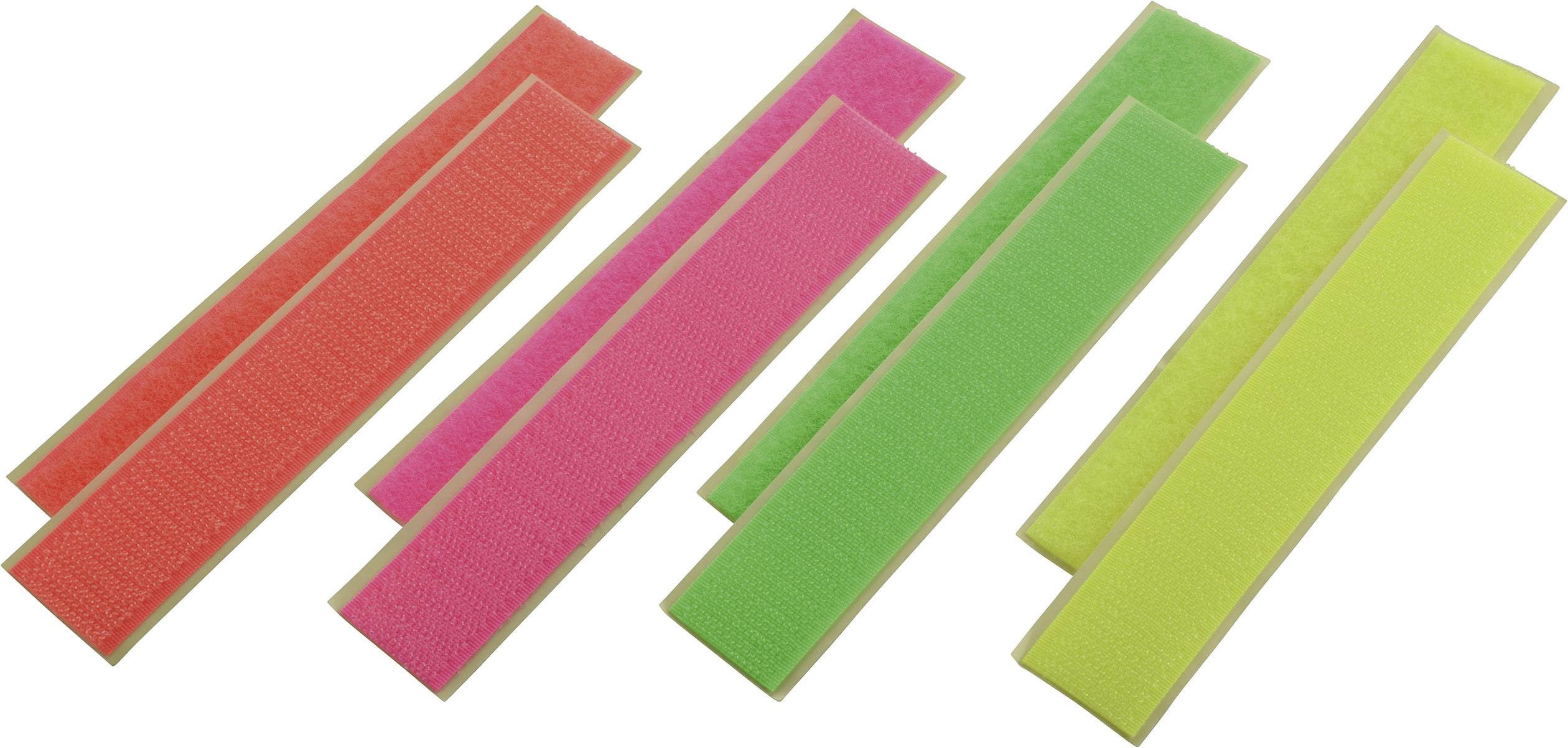 Je ein Soft- und Haftteil in Rot, Gelb, Grün und Pink.