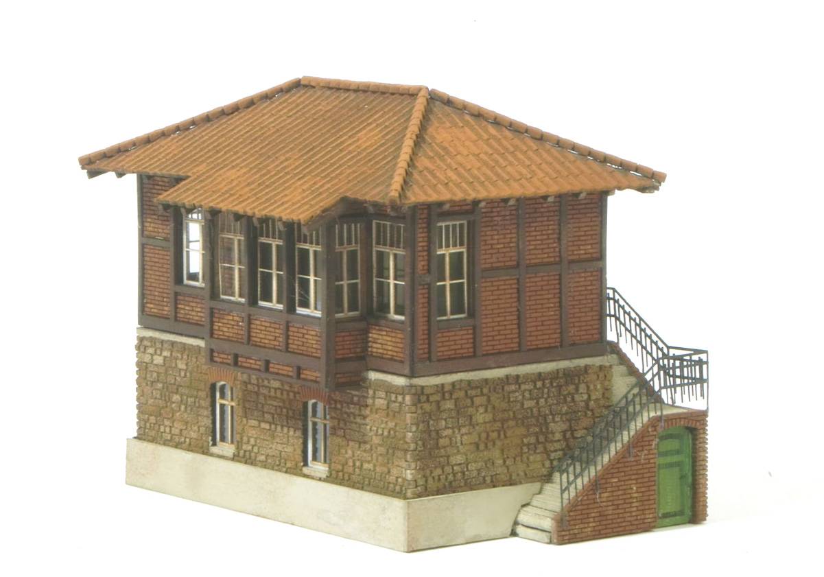 Stellwerk Eutin 1 , 2mm-Karton, laser-graviert und -geschnitten, Stellwerk 1, um 1911; Bausatz aus 2mm-Karton; laser-graviert und -geschnitten; der Bausatz sollte individuell bemalt werden