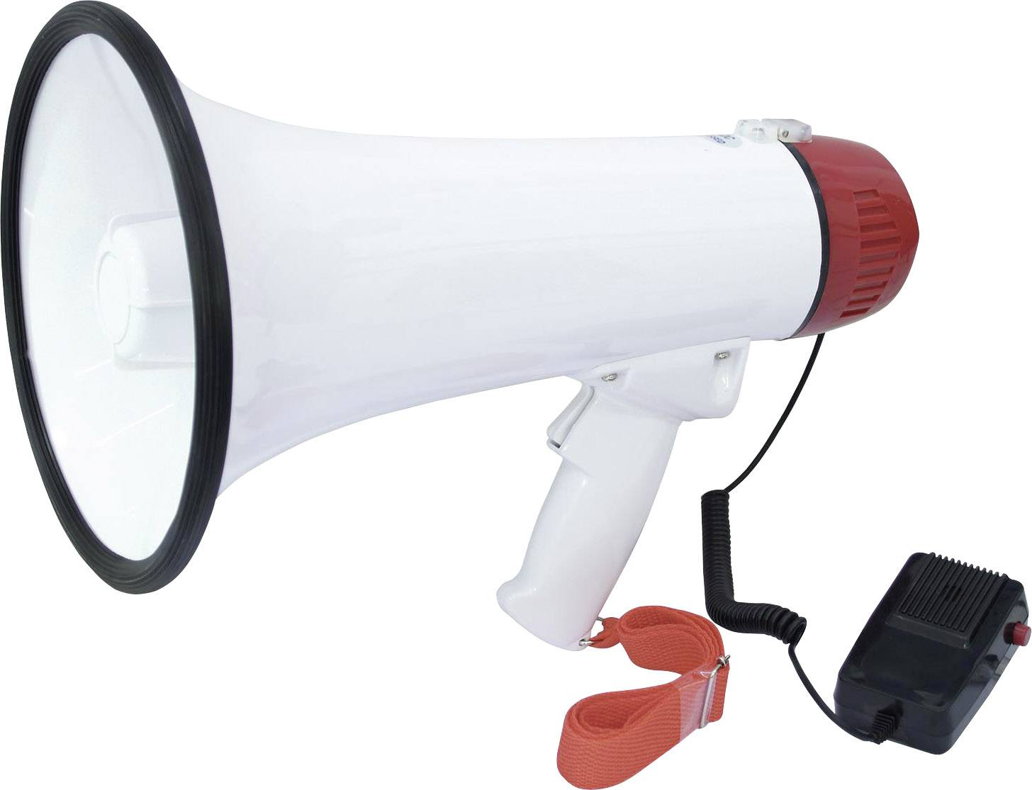 Verschaffen Sie sich Gehör! · 15 W Megaphon mit integriertem Mikrofon · Schaltbare Musik · Handmikrofon am Wendelkabel · Lautstärke stufenlos regelbar · Pistolengriff und Trageriemen · Durch hochwertiges Kunststoffgehäuse (ABS) schlag- und kratzfest · Geringes Gewicht · Für 6 x 1,5 V Mono-Batterien (Typ D) (nicht im Lieferumfang).