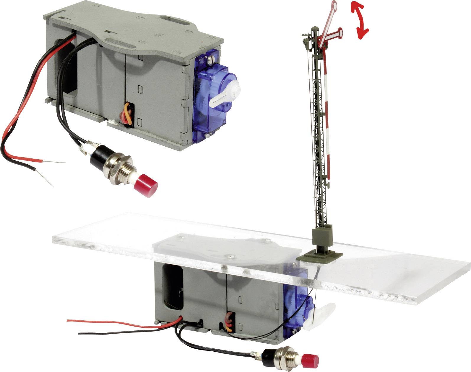 Mit Nachwipp-Effekt des Signalflügels in der Endlage. Einfachster Zusammenbau durch zusammensteckbare Laser-Cut-Bauteile. Unterflur-Servo-Antrieb für vorbildgetreues Stellen der Signale. Betriebsspannung: 9 - 18 V DC/AC.