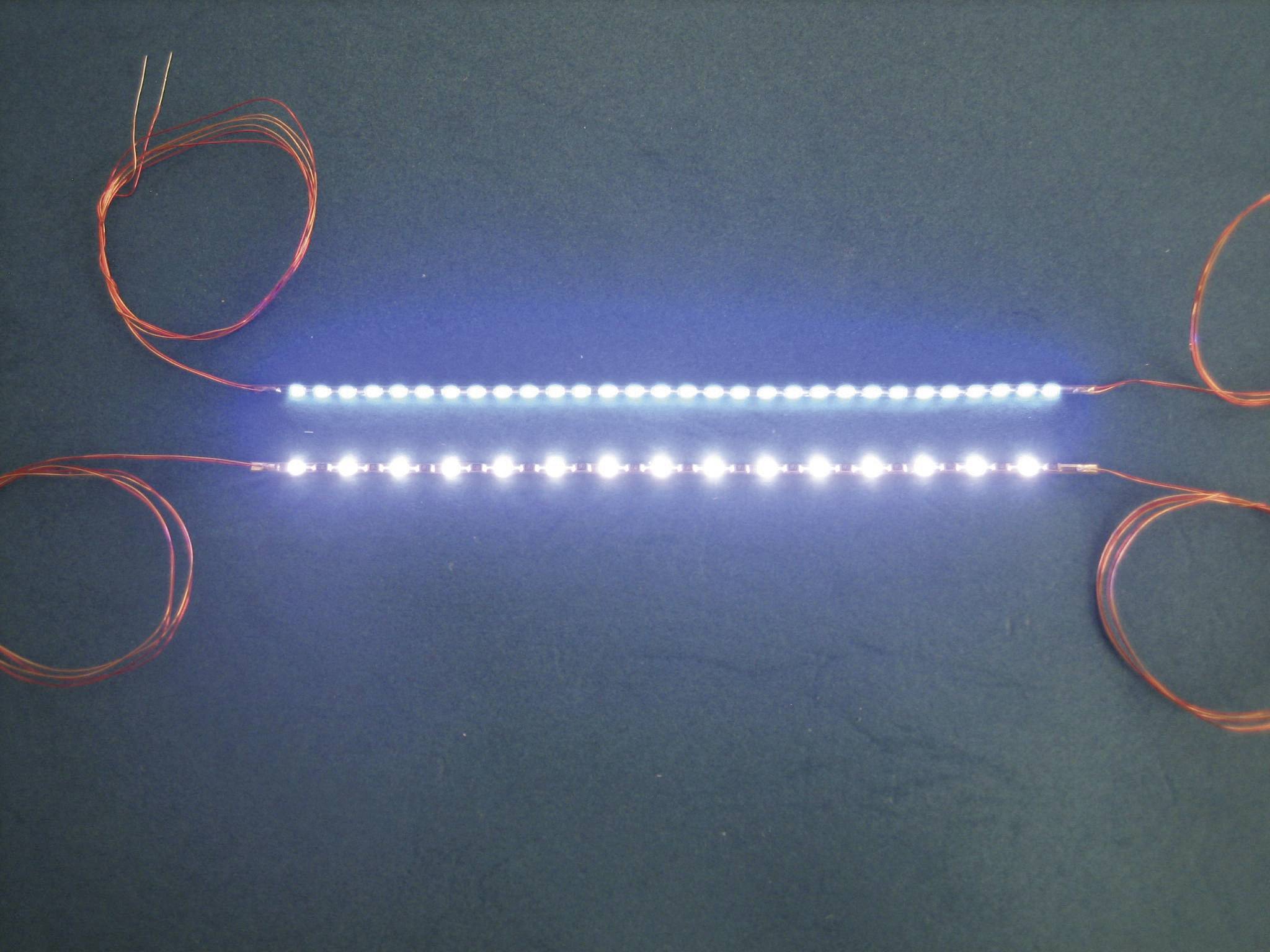 Je 3 seriell geschaltete LEDs · Schutzwiderstände in LED-Kette integriert · LED-Abstand 6 mm · Teilbar.