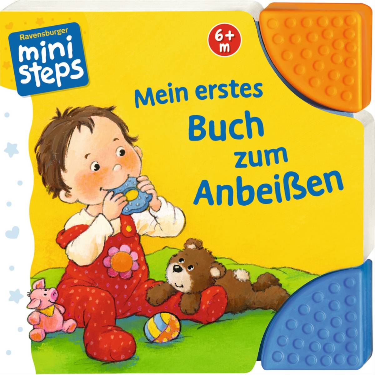 ministeps Mein erstes Buch zum Anbeißen ; Buch und Beißelement in einem. Mit bunten Kunststoffecken zum Knabbern, Greifen und Spielen. Schildert vertraute Situationen aus dem Kinderalltag. Ab 3-12 Monate, 16 Seiten
