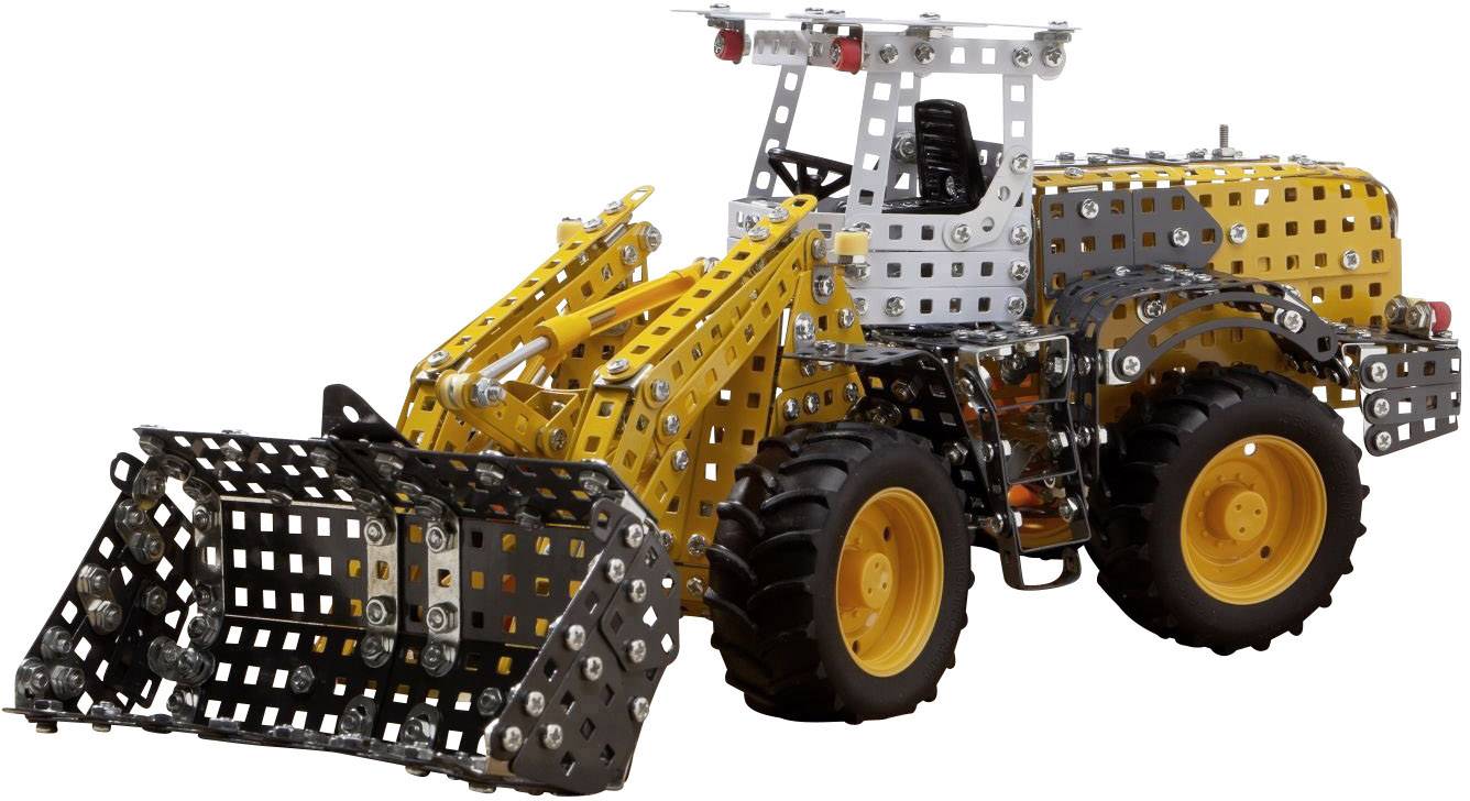 Der Liebherr Radlader mit Schaufel von Tronico im Maßstab 1:25 ist voll funktionsfähig. Er hat ein Gewicht von 2,3 kg und misst 44 x 16 x 19 cm. Die Schaufel ist beweglich und die Profilreifen aus weichem Kunststoff haben einen Freilauf. Das Set besteht aus 1351 Teilen inklusive Werkzeug und Aufbauanleitung. Die Teile aus hochwertigem Metall sind farbig bedruckt und können mit Liebherr-Dekoren komplettiert werden. Sie werden nur verschraubt und mit Muttern gekontert.