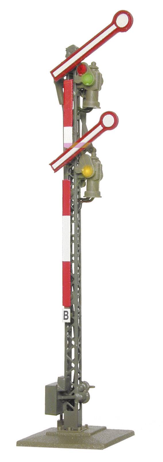 2 gekoppelte Flügel, Gittermast, Lichtwechsel rot-grün/gelb. Fertigmodell mit Antrieb.