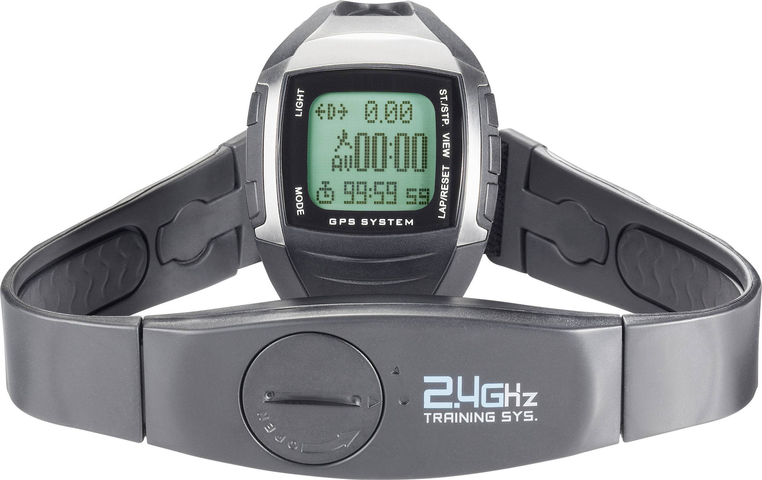 Herzfrequenzmessung: Kombiniert mit einem Brustgurt mit 2,4 GHz · 4 Herzfrequenzzonen: Gesundheitszone / Fettverbrennungszone / Aerobe Zone / benutzerdefiniert · Einstellbare untere und obere Herzfrequenzgrenze · Aufzeichnungen der Zeiten, in denen die Zone über oder unterschritten oder eingehalten wird.Trainingsmodus: Jede Trainingssitzung kann Aufzeichnungen von bis zu 99 Runden speichern · Gesamtdauer des GPS-Tracks (Aufzeichnungsprotokoll): ca. 7 Stunden · 4 Trainingsprofile: Laufen / Rad fahren / Wandern / benutzerdefiniert · Jedes Profil besitzt 3 einstellbare Ansichten der Trainingsdaten · Jede Ansicht zeigt 3 Sätze Trainingsdaten an · Mehrere Wahlmöglichkeiten zwischen den Ansichten der Trainingsdaten übersichtlicher Verlauf der Trainingssitzungen · Sitzungsübersicht und Rundenaufzeichnungen. Navigationsmodus: Wegpunktnavigation mit Pfeilzeiger und Entfernungsangaben · Insgesamt sind 10 Routen möglich; jede Route kann 30 Wegpunkte enthalten · Wahl zwischen 3 Navigationsmodi: Wegpunktmodus, Vorwärtsmodus, Rückwärtsmodus · Kompassmodus · Countdown-Timer · Stoppuhr · Auflösung: 1/100 Sekunde · Speicher: 99 Runden · Auswertung via Software über PC möglich · Wiedergabe auf Google™ earth möglich · Wiederaufladbarer Akku · Mit Hintergrundbeleuchtung · Menüsprachen: Deutsch, Spanisch, Englisch, Französisch.