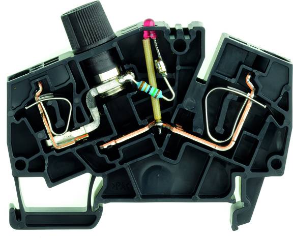 Sicherungs-Reihenklemme. Z-Reihenklemme Sicherungsreihenklemme, Bemessungsquerschnitt: 6 mm², Zugfederanschluss, PA 66/6, schwarz