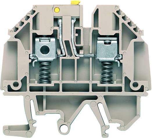 Sonderklemme. W-Reihe, Bemessungsquerschnitt: 4 mm², Schraubanschluss. Neue Lösungen für die Energiebranche werden bei Weidmüller nach lokalen oder anwendungs-spezifischen Installationsvorgaben entwickelt. In einigen Ländern müssen Steuerung und Schutz von Schaltanlagen für Übertragungs- und Verteilungsnetze den Standard EA-TS 50-18 erfüllen. Darin sind “Spring-loaded” Klemmen in Verbindung mit Hookblade-Kabelschuhen vorgeschrieben, um eine zusätzliche Sicherheit zu gewährleisten. Unsere “Spring-loaded” Reihenklemmen der Reihe WDU SL und die Trennklemmen der Reihe WTL SL entsprechen diesem Standard. Der Zugbügel wird in den SL Versionen von einer Schraubenfeder unterstützt. Darüber hinaus können bei dieser Konstruktion auch zwei Leiter in einer Klemme angeschlossen werden, wobei die Hookblade-Kabelschuhe Rücken an Rücken liegen. Ziel dieser Konstruktion ist es, auch dann einen guten elektrischen Kontakt zu erhalten, wenn vergessen wurde, die Klemmschraube anzudrehen.