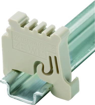 Endwinkel. Um einen dauerhaft sicheren Sitz auf der Tragschiene zu gewährleisten und ein verrutschen zu verhindern hat Weidmüller Endwinkel im Programm. Es sind Ausführungen mit Schraube und schraubenlose Ausführungen erhältlich. Auf den Endwinkeln bestehen Markierungsmöglichkeiten, ebenfalls für Gruppenmarkierer und die Möglichkeit der Aufnahme für Prüfstecker.