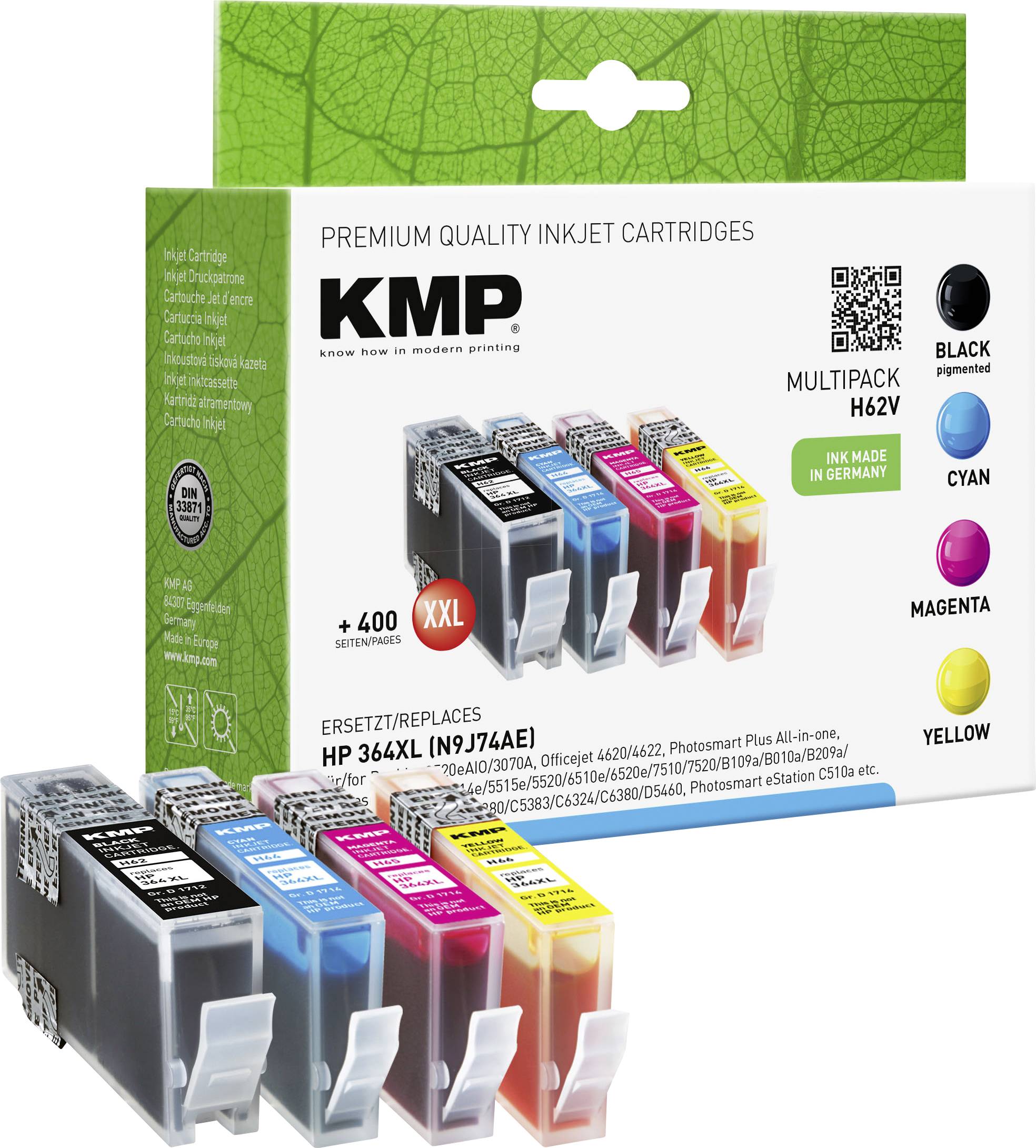 KMP Druckerpatrone Kombi-Pack Kompatibel ersetzt HP 364XL, N9J74AE, CN684AE, CB323EE, CB324EE, CB325EE Schwarz, Cyan, Magenta