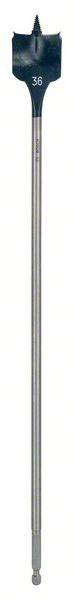 Der Self Cut Speed Flachfräsbohrer sorgt für extrem schnell gefertigte Bohrlöcher. Seine Gewindespitze mit automatischem Vorschub sorgt dafür, dass sich der Bohrer mühelos in das Holz zieht, sodass mit geringem Kraftaufwand sehr schnell gebohrt werden kann. Durch den speziell geformten Spaten kann das Bohrgut schnell abtransportiert werden, und es sind schnelle Ergebnisse möglich. In Produkttests bohrt dieser Bohrer Löcher 10-mal schneller als ein Standard-Flachfräsbohrer. Er ist geeignet für Weich- und Hartholz, leichte Baumaterialien und Gipskartonplatten. Dieser Flachfräsbohrer besitzt ein 1/4"" Sechskantschaftsystem und ist am besten für Akkubohrer geeignet. Durchmesser (D) mm: 36,00, Gesamtlänge (L2) mm: 400.
