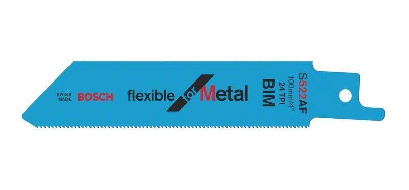 Das S 522 AF Flexible for Metal Säbelsägeblatt ist konzipiert für die Nutzung mit Kompaktsägen. Die sehr feine Zahnteilung und die gewellten Zähne ermöglichen müheloses, glattes Schneiden in dünnes Material. Zudem bietet das Blatt aus Bimetall beim Schneiden von Blech mit normaler Stärke eine lange Lebensdauer. Mit der sehr feinen Zahnteilung (1 mm) schneidet das Säbelsägeblatts Blech mit einer Dicke von 0,7–3 mm. Die kurze Länge (100 mm) ermöglicht eine Schnittleistung von bis zu 50 mm und ist ideal für Akkusägen. Es verfügt über ein 0,5-Zoll-Universalschaftsystem. Werkstoff: BIM, Zahnausführung: gewellt, gefräst, Zahnteilung [mm] / TPI: 1 / 24, Abmessungen LxBxD [mm]: 100 x 19 x 0,9, Einsatzbereiche: dünne Bleche (0,7-3 mm), müheloser, feiner Schnitt, Typ: S 522 AF