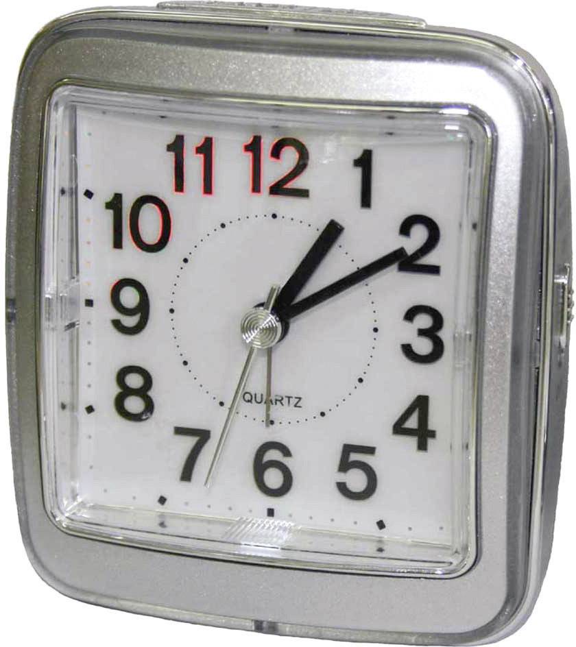 Dieser kompakte Quarzwecker verfügt über eine Permanent gedimmte Zifferblatt-Beleuchtung bei eingeschaltetem Alarm.
