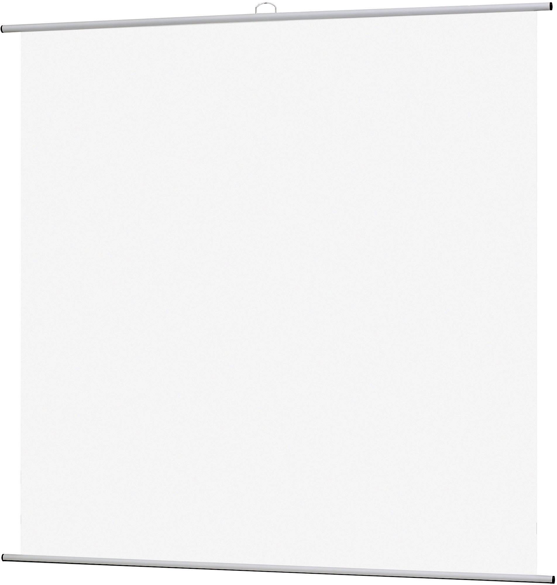 Besonders geeignet für einfache Heimprojektion. Bedienung durch manuelles Ab- und Einrollen. Abschlussstäbe oben und unten aus Stahlblech fixieren die mattweiße Leinwand (Gewebebasis). Wandaufhängung durch einen Metallbügel, der am oberen Abschlussstab befestigt ist.