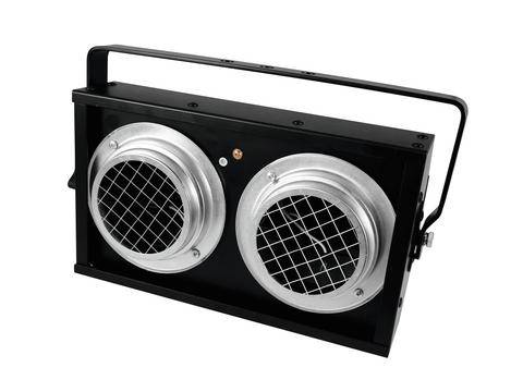 DMX512-Steuerung über jeden handelsüblichen DMX-Controller möglich · 1 steuerbarer DMX Kanal · Manuelle Dimmfunktion über DIP-Schalter · Für 2 PAR-36 120V/650W Lampen · Jede Lampe ist einzeln auf eine innenliegende Lüsterklemme geführt, so dass sich leicht beliebige Lampenversionen verdrahten lassen · Extreme und blitzschnelle Lichtentfaltung · Robustes Gehäuse · Wird mit Silikon Netzleitung und Schutzkontaktstecker geliefert · Decken- und Traversenmontage möglich