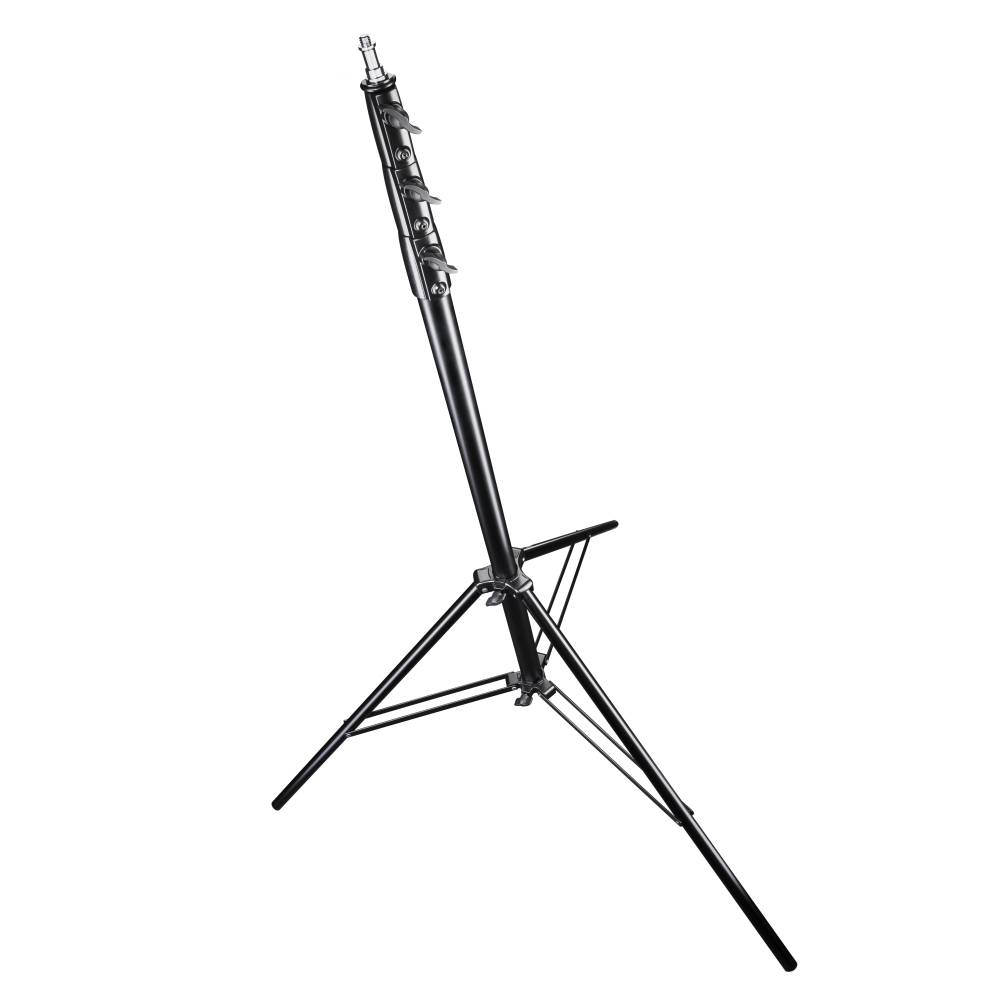 Das walimex pro Lampenstativ AIR ist eine hochwertige Lösung für den Studiofotografen. Das sehr gut verarbeitete Stativ ist mit nur ca. 2,15kg Eigengewicht und einer Transportgröße von knapp 120cm portabel und flexibel einsetzbar. Sie können an diesem Stativ Studioblitze oder Reflektoren bis zu einem Gewicht von 8kg verwenden. Die Luftdämpfung ist der besondere Clou an diesem Stativ, da sie beim Absenken der einzelnen Stativglieder für die nötige Sicherheit sorgt. Mit dem Standard-Spigot-Anschluss von 5/8 Zoll mit 1/4 Zoll Gewinde ist das Studio-Stativ für alle üblichen Studioleuchten und Studioblitze geeignet.