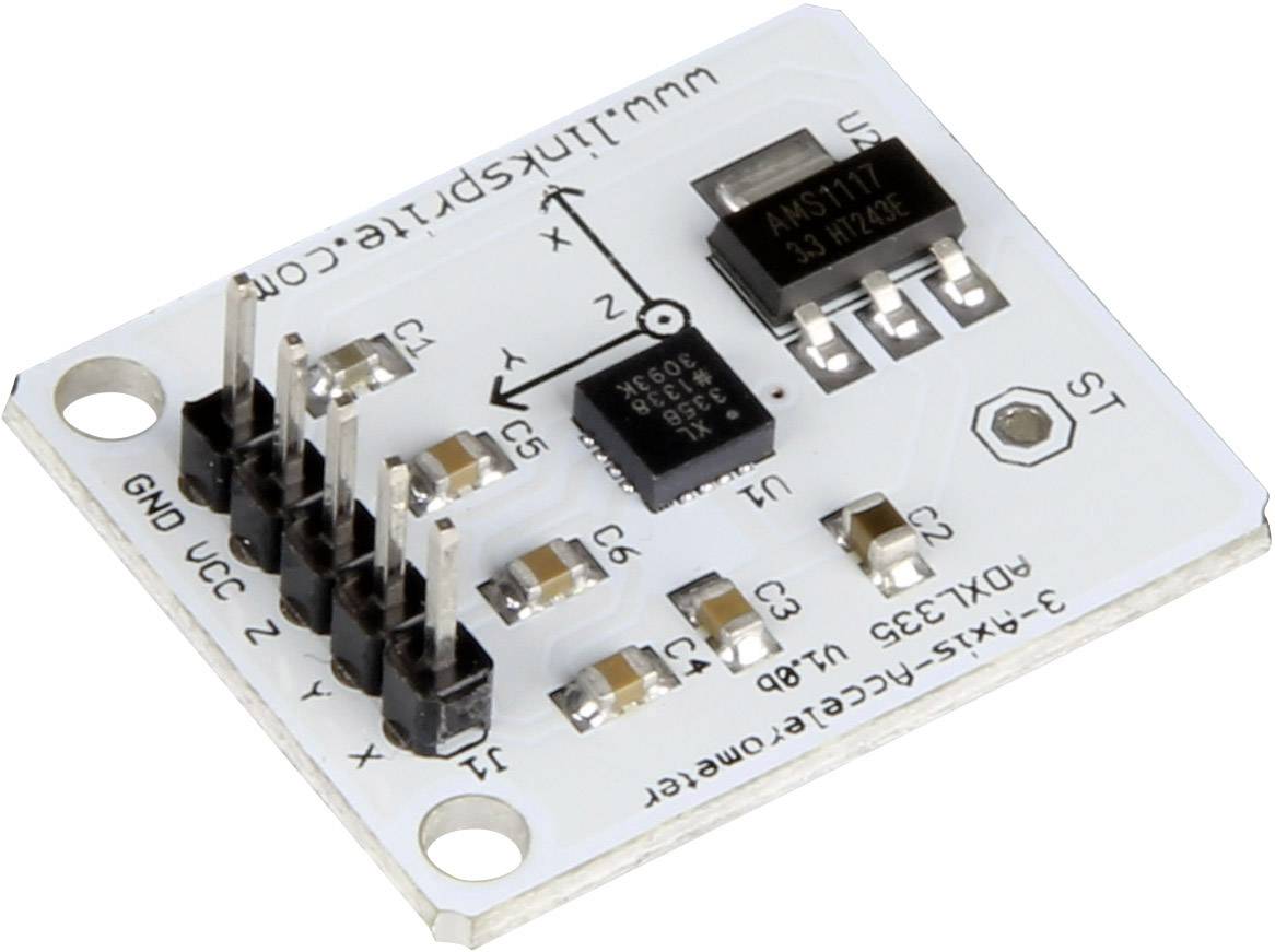 Mit dieser Linker Kit Platine ist eine 3 Achsenmessung (Triple Axis Accelerometer) möglich. Die Meßdaten werden als direkt verarbeitbarer Spannungswert ausgegeben. So sind Bewegungen von plus/minus 3G meßbar.