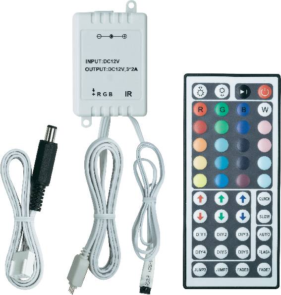 Für den Betrieb der YourLED oder YourLED ECO RGB-Stripes wird ein RGB-Controler benötigt. Der RGB-Controler mit Fernbedienung verbindet Komfort mit einer Vielfalt an Steuerungsmöglichkeiten, Dimmbarkeit, programmierbaren Farbwechseln und Lichteffekten.