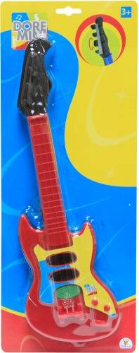 Doremini Rockgitarre rot mit Nylon-Saiten. Länge: 40cm. Auf Blisterkarte. Für Kinder ab 3 Jahren.
