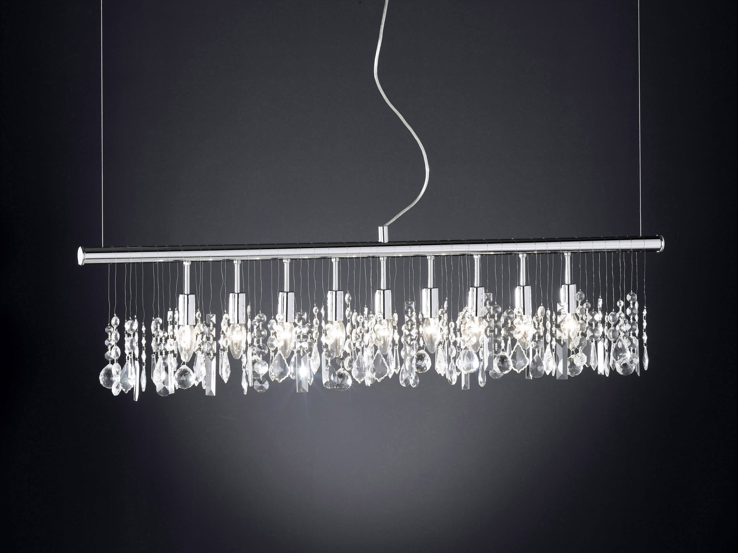 Diese nobel wirkende Pendelleuchte mit der Bezeichnung CRYSTAL, in der Farbausführung Chrom, verleiht durch die insgesamt 36 Glaskristallapplikationen-/anhänger jedem Raum eine besondere Note.