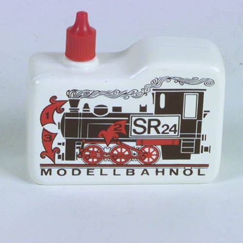Modellbahnöl Reinigungsöl und Dampföl SR 24 mit 225 ccm. Verwendung: 1. Dampföl leicht dosiert durch Spritzverschluss. 2. Reinigungsöl für Motoren und Getriebe. 3. Schienenreinigungsöl. Wirkt sofort schmutzlösend und greift keinen Kunststoff an. Vorzüglich geeignet für Schienenreinigungswagen. Kein Schmieröl für Achslager und Getriebe.