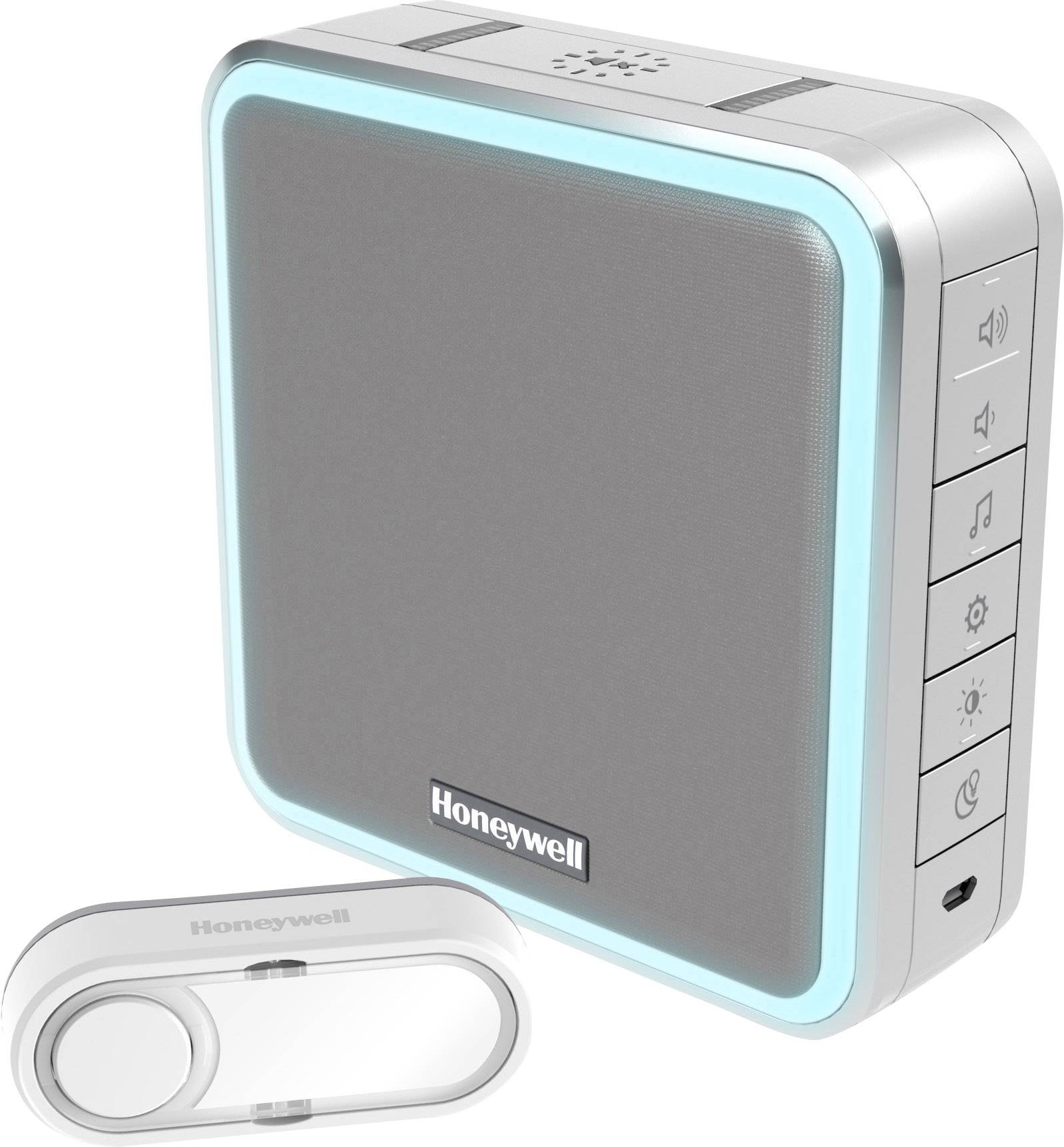 Diese Funk-Gongs verfügen über Honeywell-ActivLink™ Technologie und bestechen durch ihre drahtlose Reichweite von 200 m. Dies gewährleistet, dass Sie die Funk-Gongs überall im Haus und im Garten mit sich nehmen können, und dabei immer auf dem Laufenden gehalten werden, ob ein Besucher an der Tür steht. Dank des eingebauten Repeaters/Funkverstärkers kann mit einem zweiten Funk-Gong-Set die Funkreichweite auf bis zu 400 m erhöht werden. Der Lichtring ist mit 7 einstellbaren Farben und LED-Blitzlicht ausgestattet für visuelle Meldungen. Der Schlaf-/Stummmodus bringt den Funk-Gong für 3, 6, 9 oder 12 Stunden oder auf unbestimmte Zeit zum Schweigen. Die Funk-Gongs sind bereits vorkonfiguriert und nach dem Kauf sofort einsatzbereit. Wahlweise kann der Gong auch über ein Netzteil mit Micro-USB (5 V/2 A) betrieben werden.