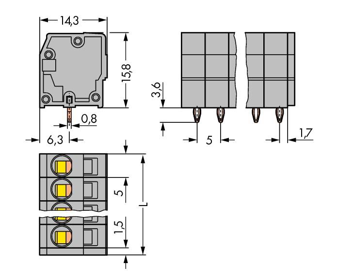 WAGO, 739-107/100-000, Printklemmen, Leiterplatten-Anschlussklemmen, Schraubklemmen, Federkraftklemmen