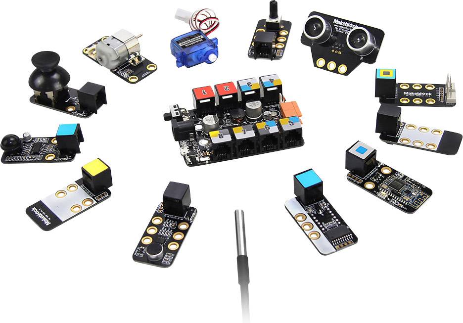 12 Elektronikmodule enthalten, plus ein Makeblock Orion (Arduino-kompatibel)