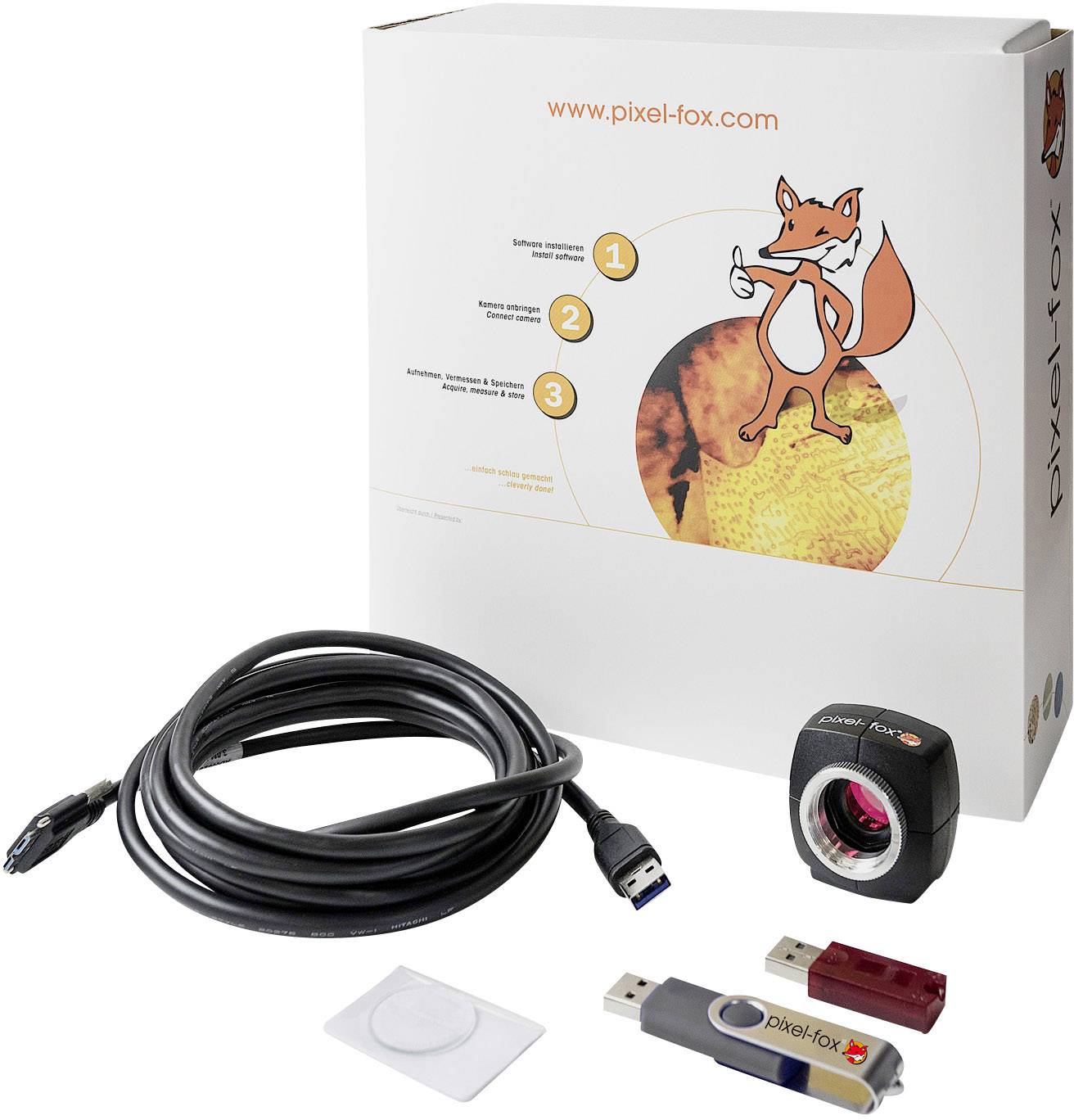 Software-Stick mit pixel-fox® Software zur Bildaufnahme, Vermessung, Dokumentationh, Installationsanleitung, HTML-basierte Online-Hilfe