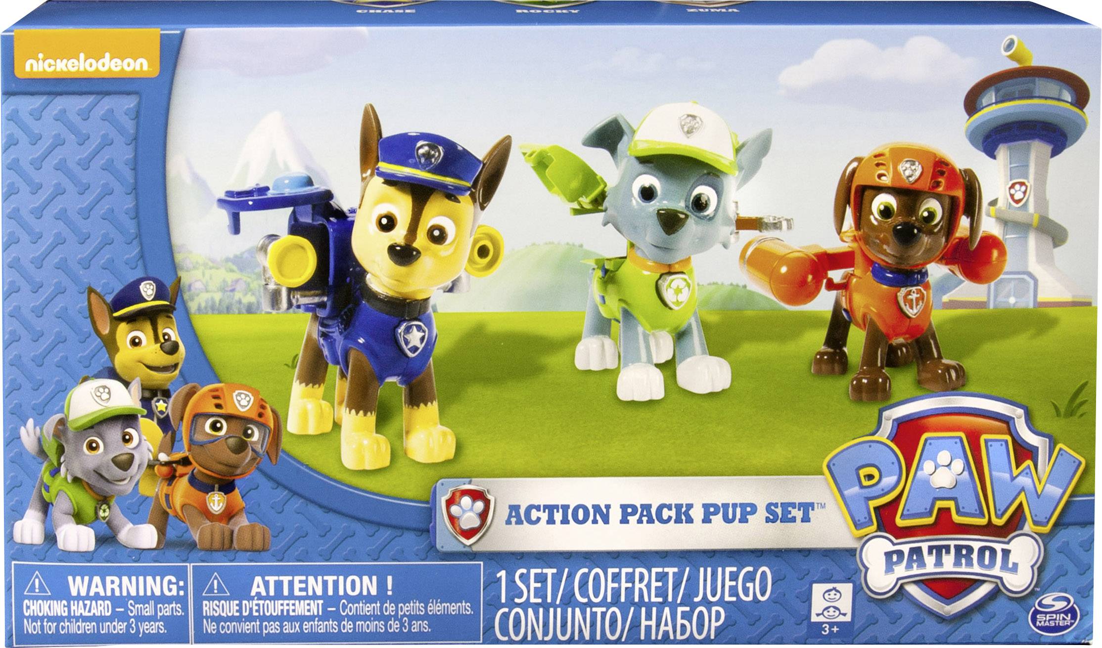 Die 3 beliebten Welpen aus der Fernsehserie Paw Patrol als niedliche Sammelfiguren mit Actionfunktion in einem Set! Einfach auf die Hundemarke drücken und schon wird der Rucksack zum spannenden Einsatzgerät. So unterschiedlich wie die Persönlichkeiten und Aufgaben der Welpen sind auch ihre Ausrüstungsgegenstände. In der zweiten Welle sind Chase, Rocky und Zuma in einem Set erhältlich.