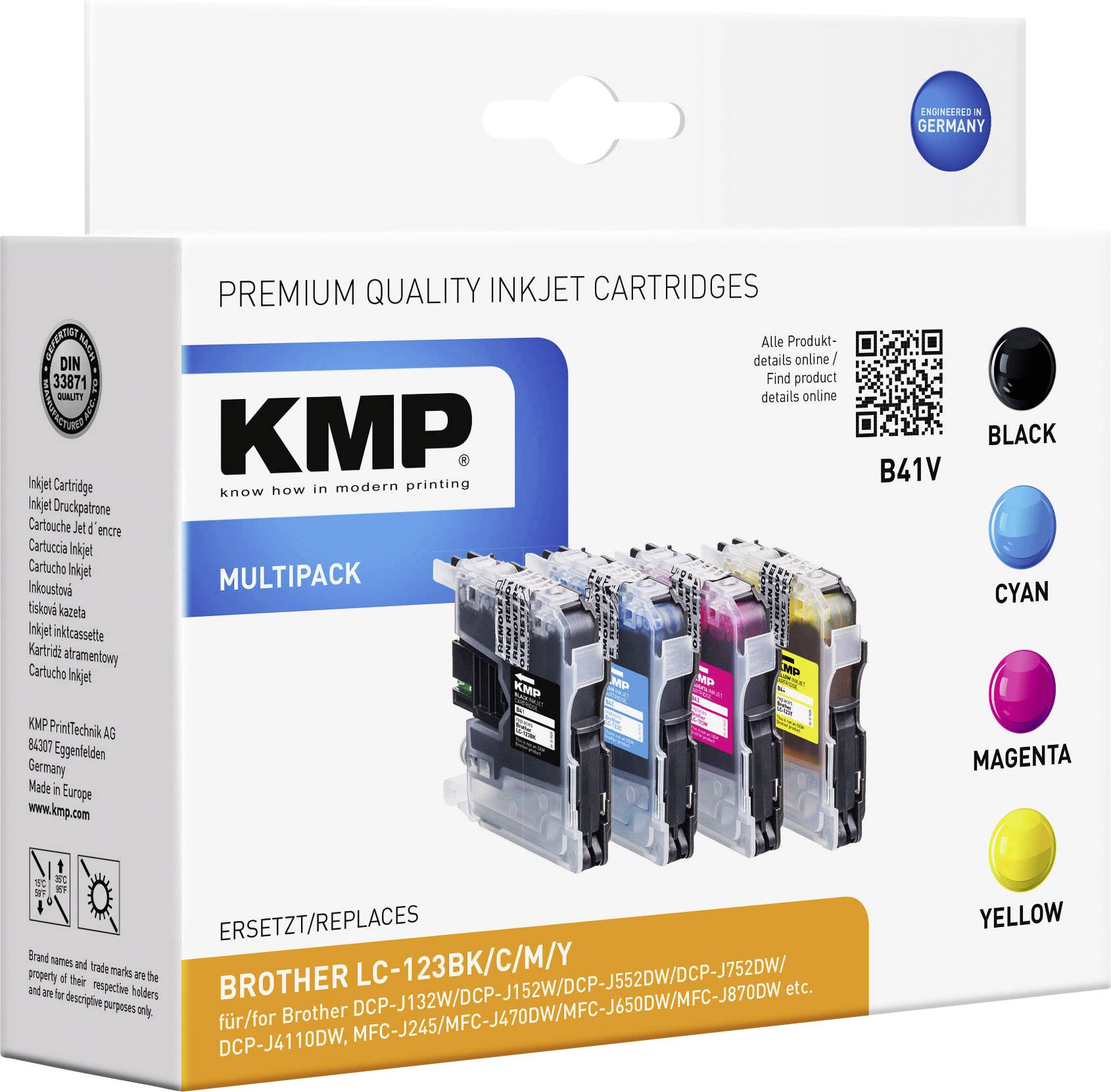 KMP Tinte ersetzt Brother LC-123 Kompatibel Kombi-Pack Schwarz, Cyan, Magenta, Gelb B41V 1525,0050