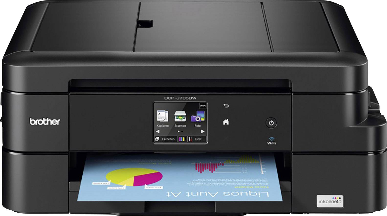 inkbenefit - Mit besonders günstigen Druckkosten dank XL-Patronen 3in1 - Drucken, Scannen, Kopieren Einfache Bedienung mit 6,8 cm Touchscreen-Farbdisplay Netzwerkfähig mit WLAN-Schnittstelle Bis zu 12/10 Seiten/Min. Druckgeschwindigkeit in S/W und in Farbe (ISO) Kosten und Zeit sparen mit doppelseitigem Druck Drucken und Scannen auch über Smartphone oder Tablet Unterstützung von Brother iPrint&Scan, Google Cloud Print™, Apple AirPrint und Mopria Fotodirektdruck über Speicherkarte Komfortabler Vorlageneinzug für bis zu 20 Blatt