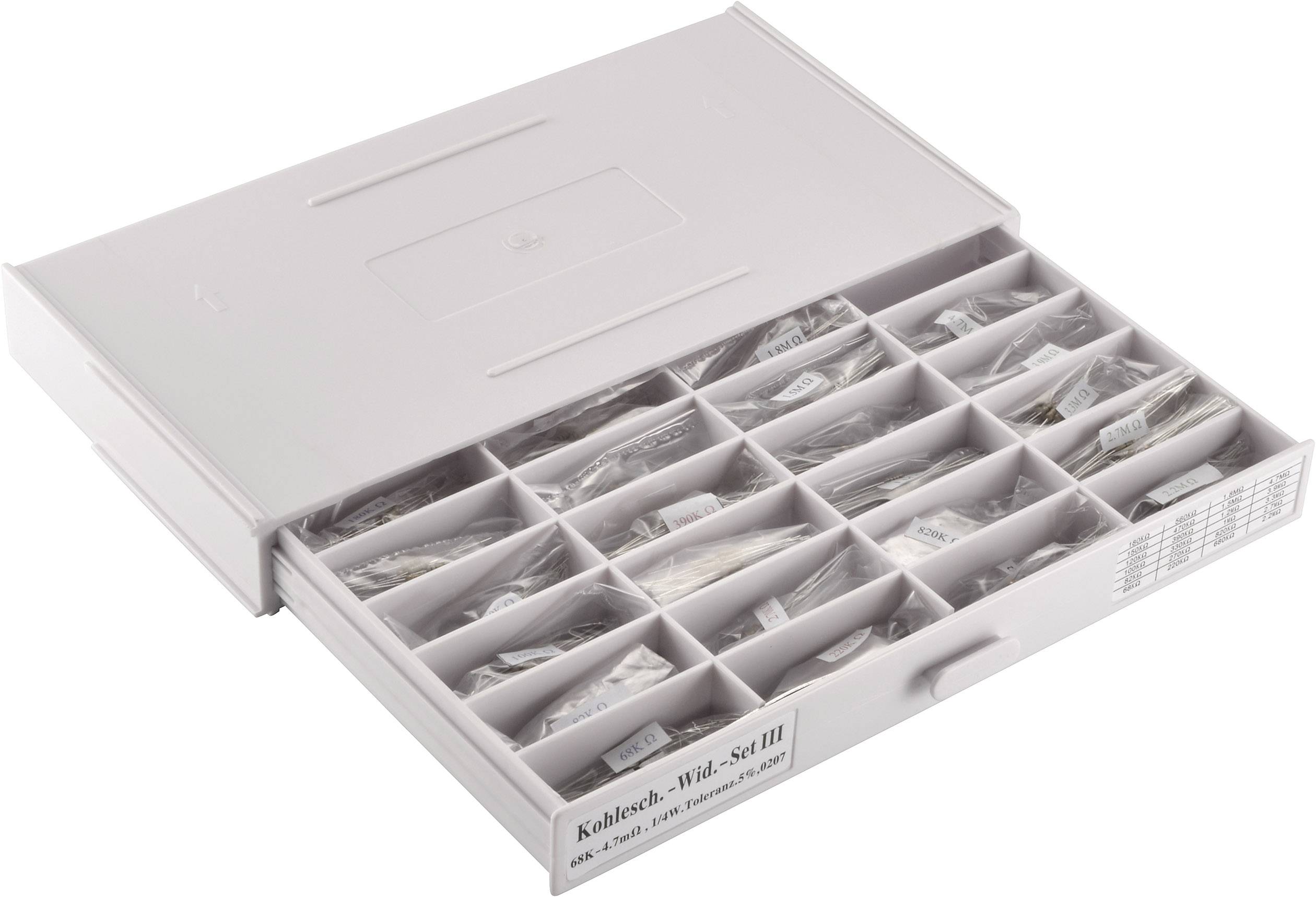 23 Werte (je 25 St.) der E 12 Reihe von 68 kΩ - 4,7 MΩ (Insgesamt 575 St.).