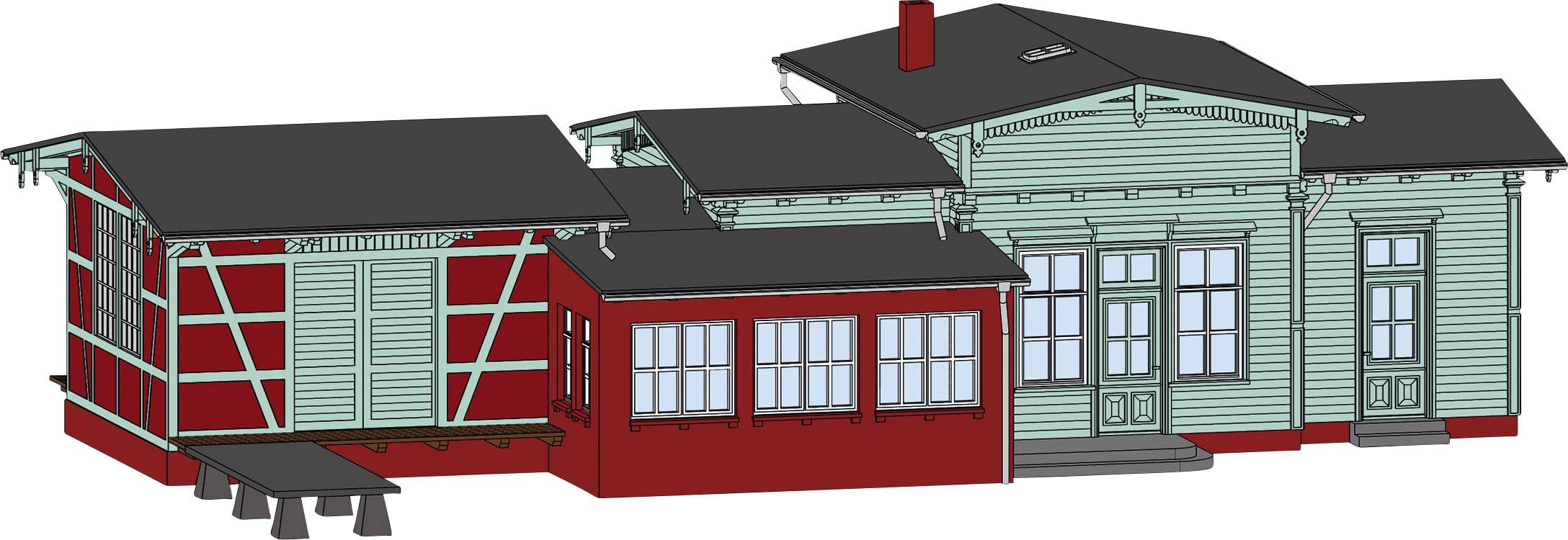 Dieser Bahnhof im ländlichen Stil steht an der Strecke Stade-Bremervörde und wurde 1898 gebaut. Die Bauform war weit verbreitet. Das Hauptgebäude und der Güterschuppen können auch einzeln aufgebaut werden.