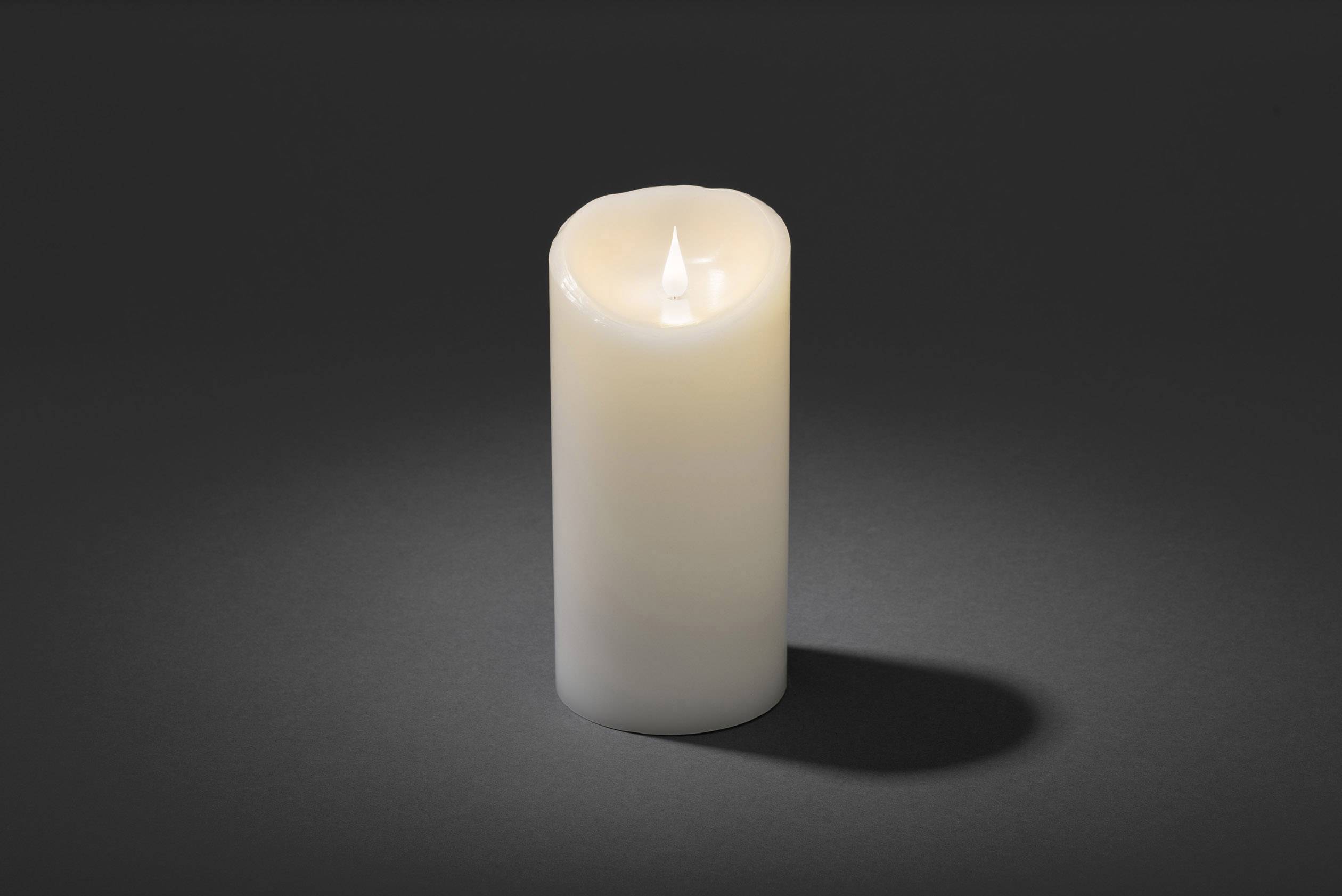 Ob an einem adventlichen Winterabend oder einer lauen Sommernacht – Kerzenflackern und Lichterglanz sind für eine warme, wohltuende Atmosphäre unentbehrlich. Doch dafür müssen Sie nicht zwangsläufig mit dem Feuer spielen. Die Living Light Echtwachskerzen mit 3D-Flamme sind täuschend echt gestaltet. Kein Uneingeweihter bemerkt, dass in dieser Kerze ein Batterie-Herz schlägt, das 400 Stunden Kerzenromantik schenkt. Sanft tanzt die Flamme auf und ab und der goldene Schein taucht die Umgebung in sanftes Schummerlicht. Setzen Sie zauberhafte, flackernde Glanzpunkte ganz ohne Risiko und Wachsspritzerei. Der Clou? Mit dem Timer können Sie eine Leuchtdauer von vier oder acht Stunden einstellen. Pünktlich erlischt das Licht und flackert am nächsten Tag zur selben Zeit wieder auf. Praktischer und sicherer geht es nicht. Mit dieser Echtwachkerze setzen Sie auf ein unverwechselbares und langlebiges Markenprodukt, an dem Sie und Ihre Lieben dank ausgezeichneter Qualität und geprüfter Sicherheit „alle Jahre wieder“ Freude haben werden