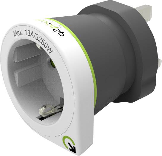 Reiseadapter, Stecker: Schutzkontakt (Europa), Kupplung: Grossbritannien, Voltage: 100 - 250V, Ampere: 10A, Farbe: weiss, grün, grau