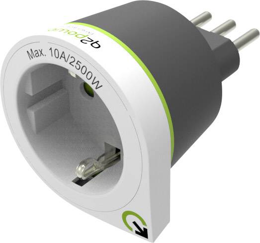 Reiseadapter, Stecker: Schutzkontakt (Europa), Kupplung: Italien, Voltage: 100 - 250V, Ampere: 10A, Farbe: weiss, grün, grau