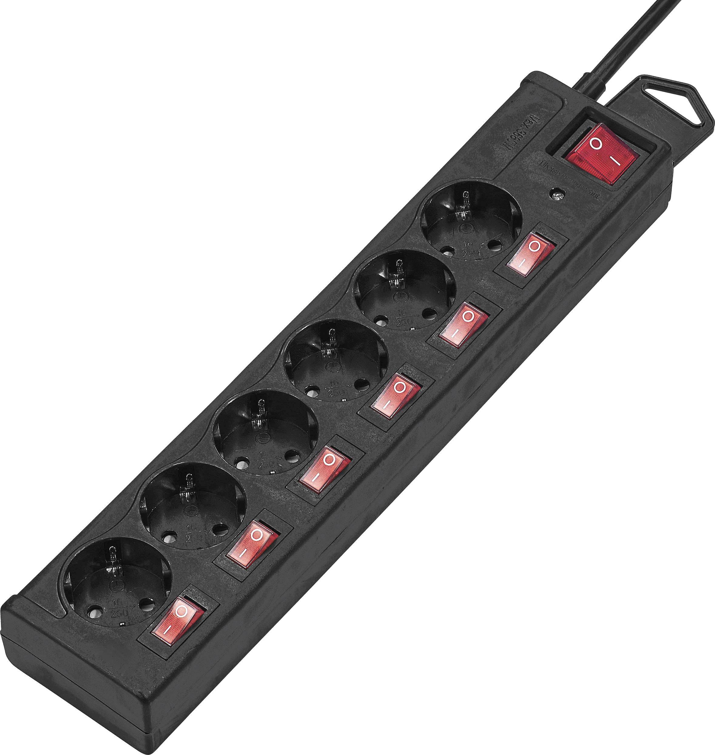 Überspannungsschutz-Steckdosenleiste 6fach Schwarz Schutzkontakt 1St.