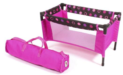 Niedliches Reisebett für Puppen mit praktischer Stoff-Tragetasche. Kompakt und einfach zusammenklappbar. Für Puppen bis ca. 50 cm. Artikelmaße: ca. 54 x 31 x 32 cm, Gewicht: 1,2 kg. Ab 3 Jahren.