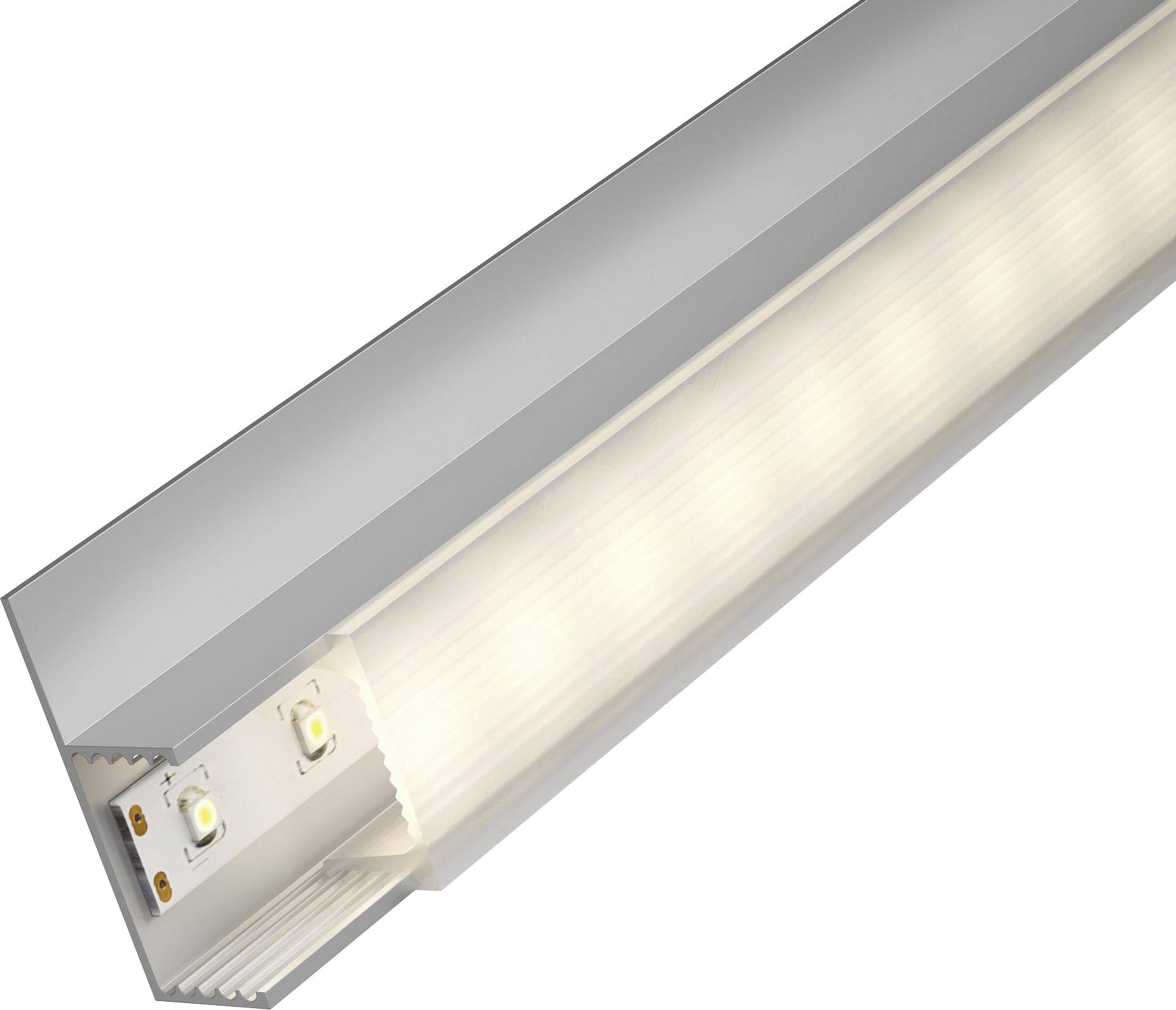 Das Socle Profil sorgt für blendarmes Orientierungslicht und setzt alle handelsüblichen Fußleisten aus Holz oder Kunststoff in Szene. Es wird mit der Wand verschraubt und mit einem LED-Strip nach Wahl versehen. Im Anschluss passen Sie den verstellbaren Diffusor an die Materialstärke Ihrer Fußleiste an und montieren sie oberhalb des Profils.