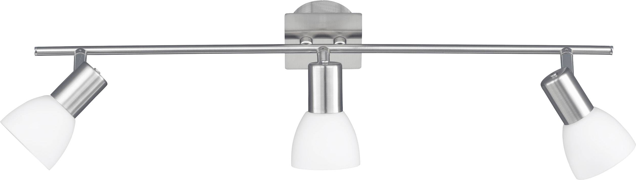 ANGOLA! Diese Artikelserie besteht aus effizienten Strahlern, verbunden mit hochwertigem Nickel. Diese Leuchte hat eine Oberfläche in Nickel-matt und die Gläser sind weiß lackiert mit einem jeweiligen Durchmesser von 7 cm. Diese Leuchte ist zudem mit einem Schalter ausgestattet.