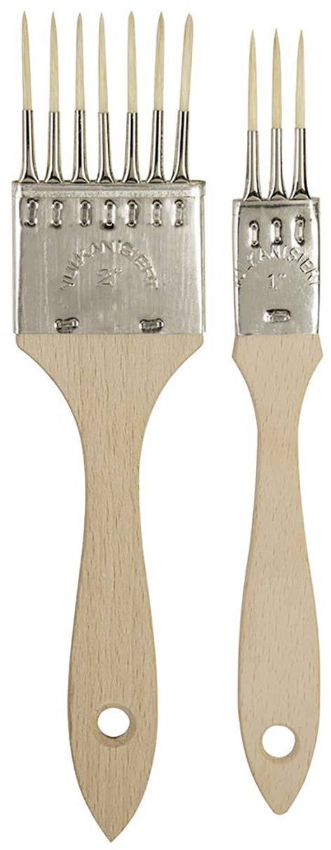 Borste weiß gebleicht · Nickelblech gefalzt · Ø Pinsel 1: 26 mm · Ø Pinsel 2: 48,8 mm.