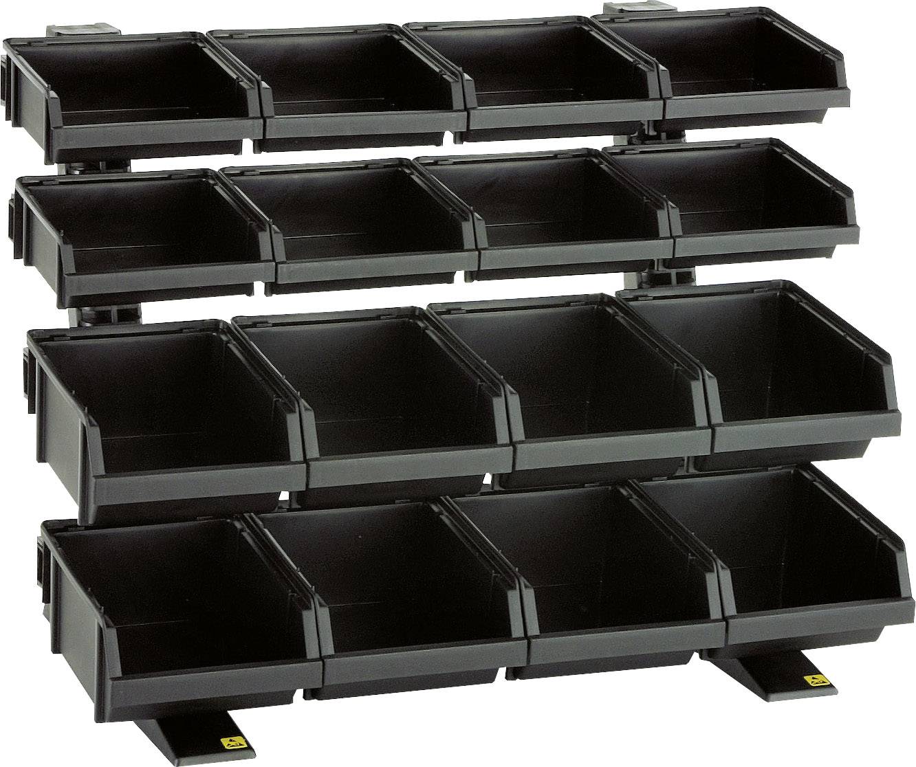 ESD Tischständer mit 16 Sichtboxen: 8x Typ 2-80, 8x Typ 3-160. Inkl. Erdungskabel.